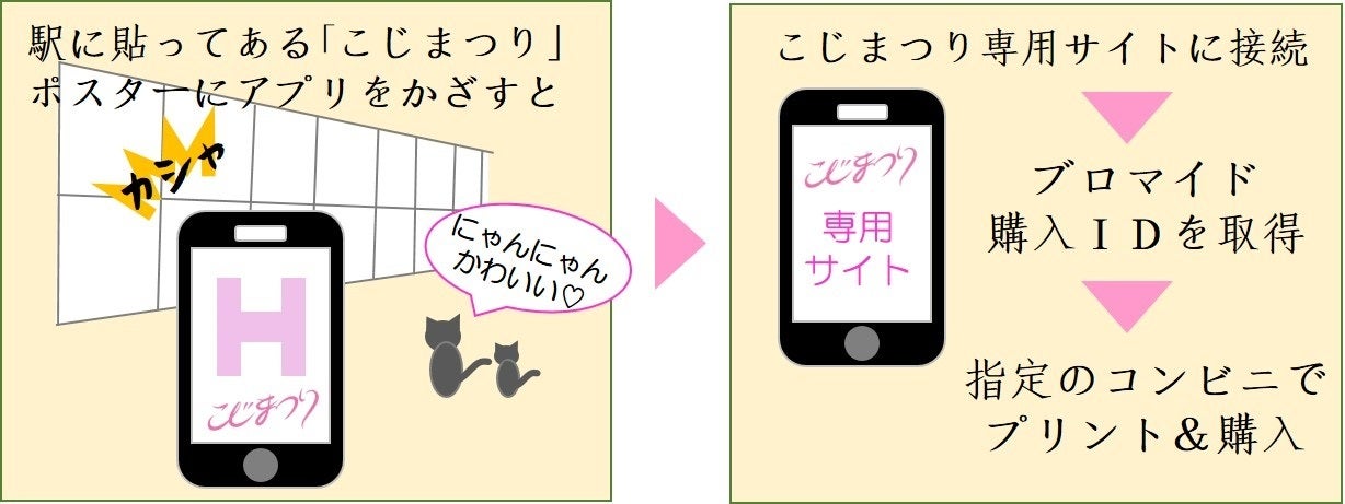 東京メトロ7駅に掲出されている「こじまつり」のポスターに東京メトロアプリの中の「メトロラボ2017」を立ち上げ、 ポスターにかざすと専用サイトに接続します。