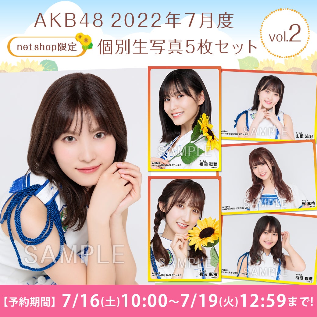 AKB48 2022年7月度 net shop限定個別生写真5枚セットvol.2 1,100円(税込)