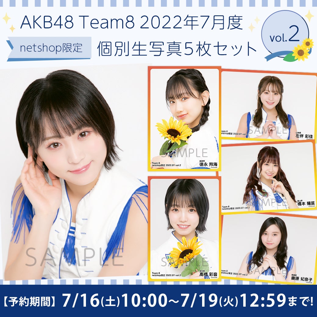 AKB48 チーム8 2022年7月度 net shop限定個別生写真5枚セットvol.2 1,100円(税込)