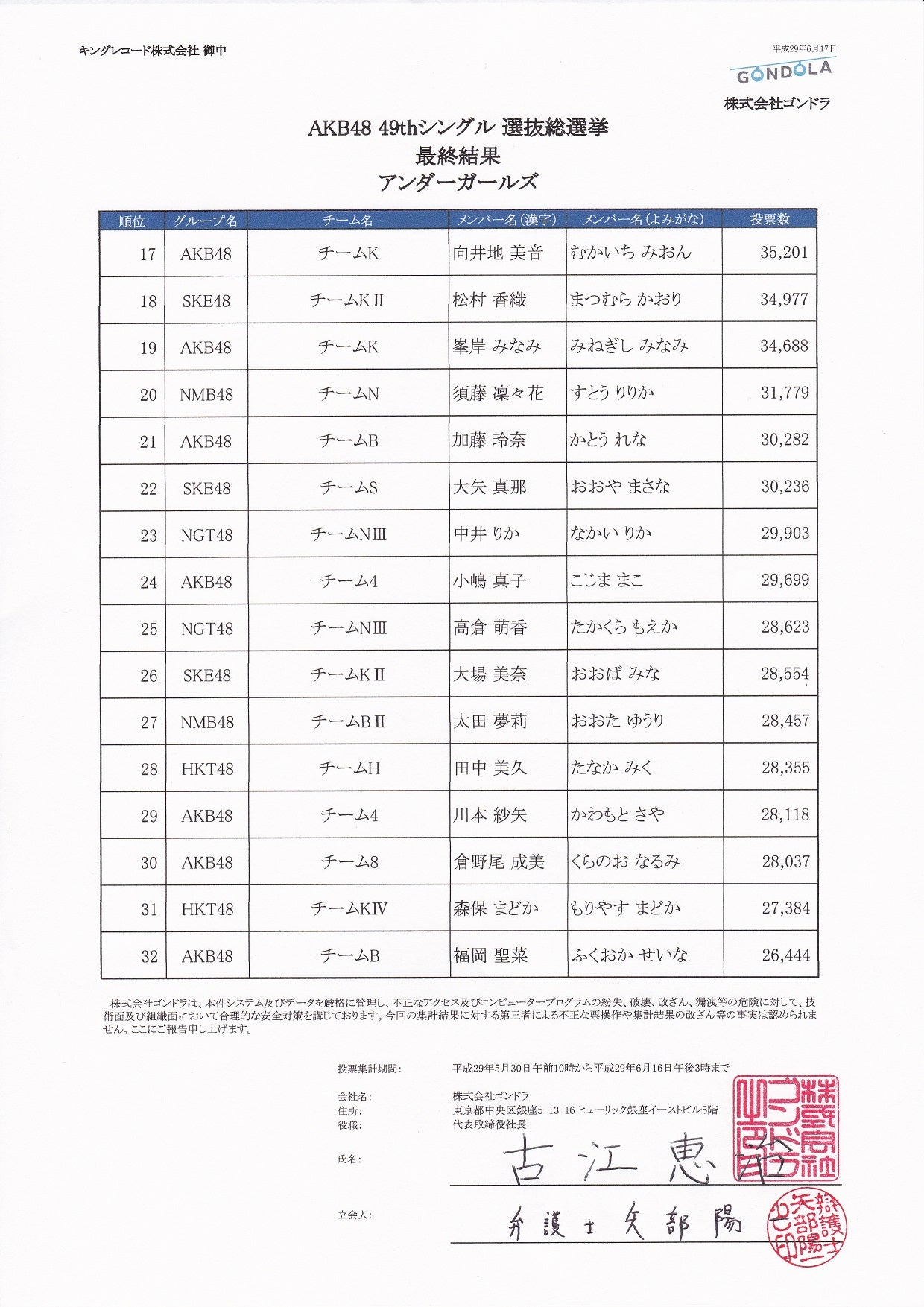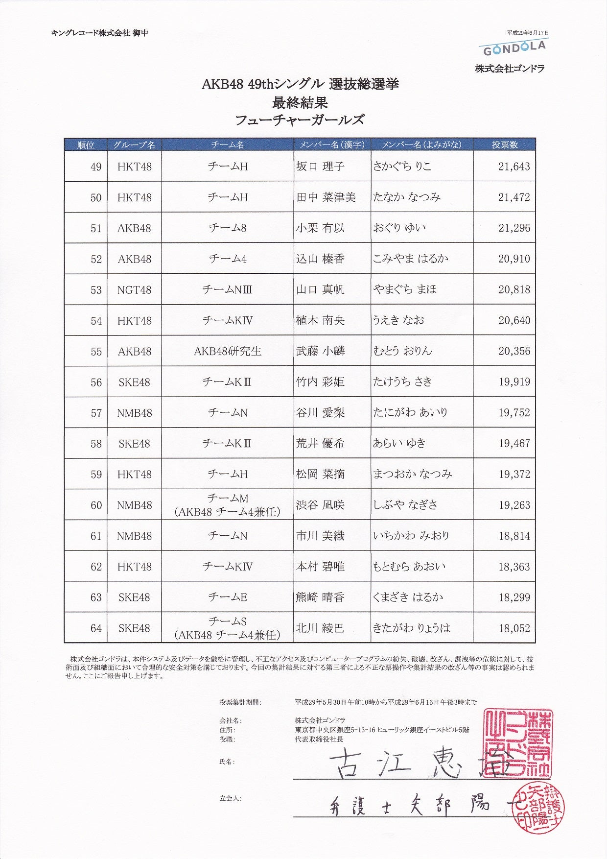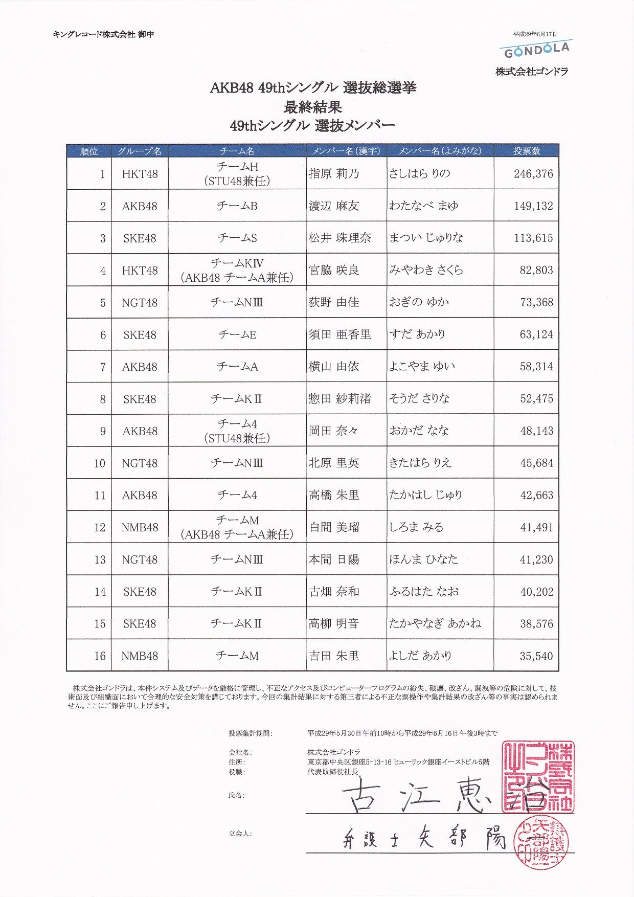 「AKB48 49thシングル 選抜総選挙」開票結果