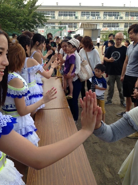 初めてのアイドルとのハイタッチを恥ずかしそうに