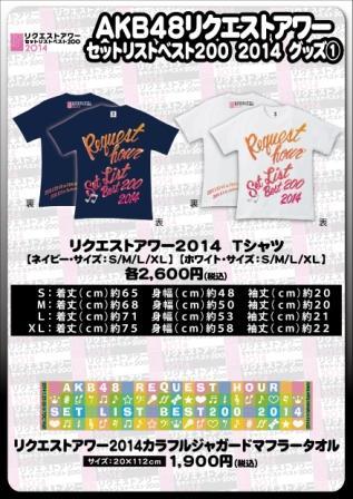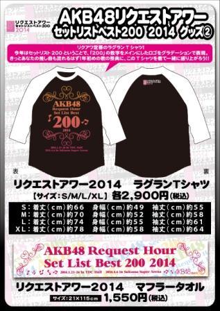 「AKB48リクエストアワーセットリストベスト200 2014」関連グッズの先行販売を下記の通り行います。