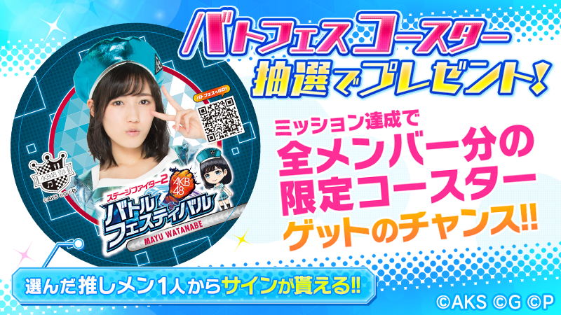 キャンペーンに参加して、推しメンのサイン入りバトフェスコースターセットをゲットしよう。