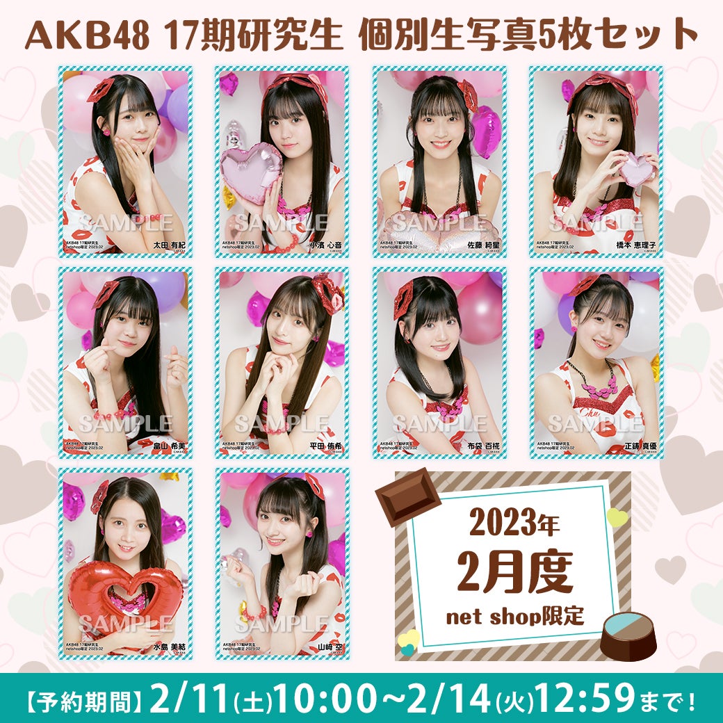 AKB48 17期研究生 2023年2月度 net shop限定個別生写真5枚セット | AKB48 Official ShopAKB48 Official Shopが販売するAKB48 17期研究生 2023年2月度 net shop限定個別生写真5枚セットの販売ページです。AKB48 Official ShopはAKB48の公式通販サイトです。メンバー個別グッズやライブグッズ、生誕グッズ、生写真をはじめ、CDやDVD&Blu-rayも取扱い中!shop.akb48.co.jp
