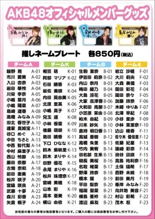推しネームプレート :91種 販売価格各850円(税込)