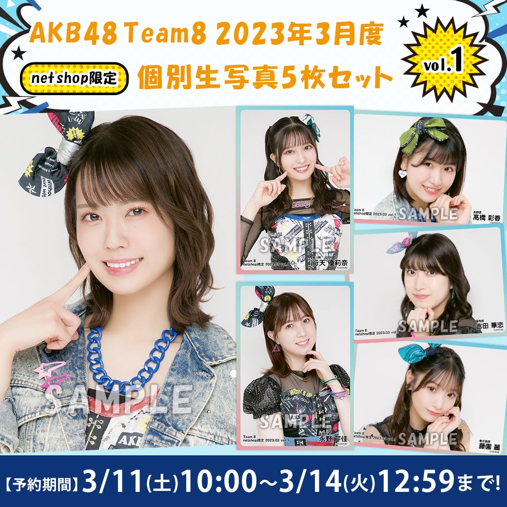AKB48 チーム8 2023年3月度 net shop限定個別生写真5枚セットvol.1 1,100円(税込)