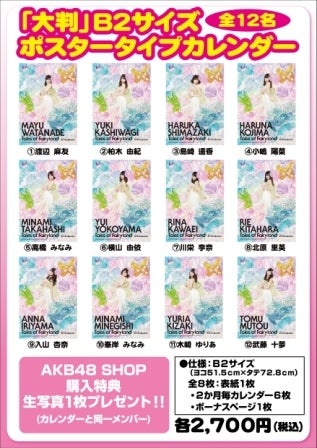 ※購入特典生写真1枚プレゼント(カレンダー同一メンバー)