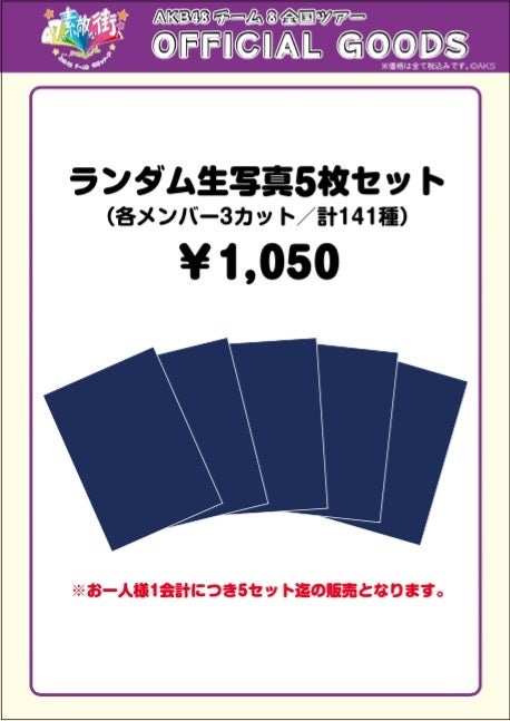 ※「ランダム生写真5枚セット」はお1人様1会計につき5セットまでの購入制限を設けさせていただきます。
