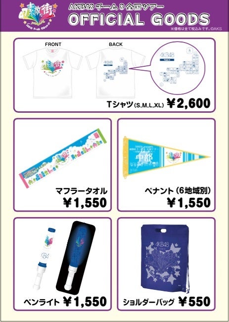 2014年12月23日に石川県こまつ芸術劇場うららにて開催されます「TOYOTA presents AKB48チーム8 全国ツアー ~47の素敵な街へ~」のグッズ販売詳細をおしらせします。