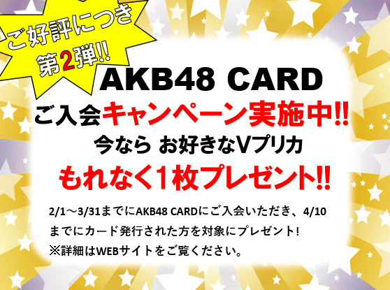 「AKB48 CARD会員、AKB48 CARDを当日お申込完了」で、Vプリカ1枚以上購入の方が対象となります。