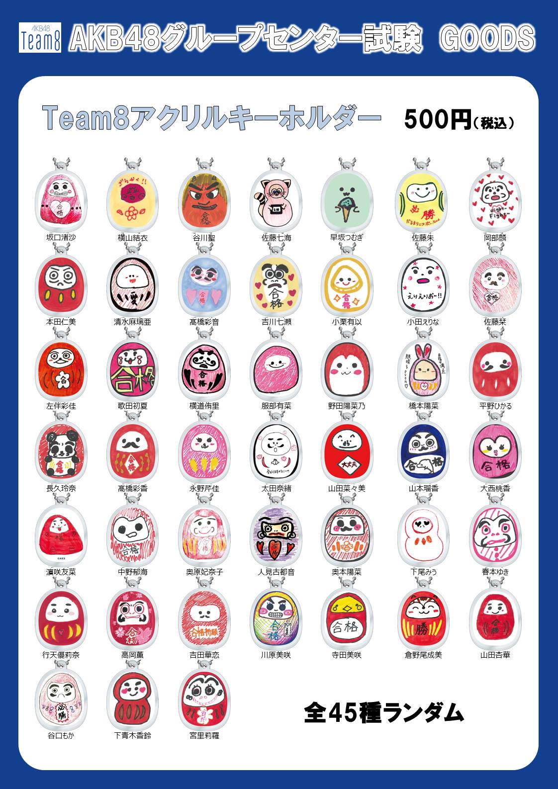 ・アクリルキーホルダー(45種ランダム封入) 500円(税込)