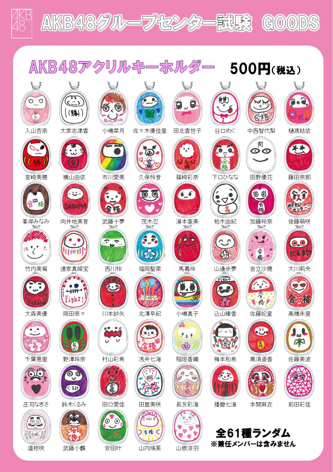 ・アクリルキーホルダー(61種ランダム封入) 500円(税込)
