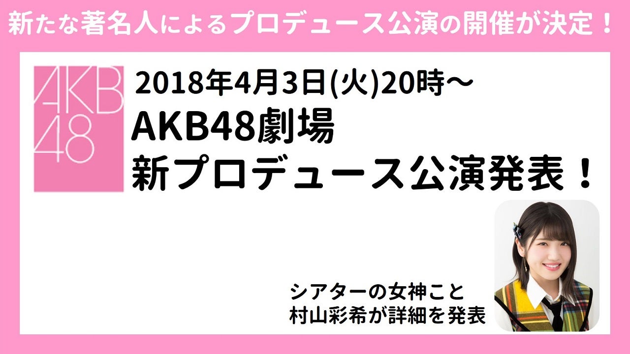 【SHOWROOM】4月3日(火)20時~「AKB48劇場 新プロデュース公演発表!」