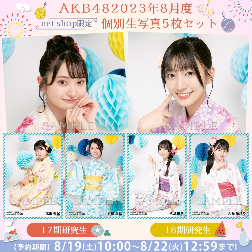AKB48 18期研究生 2023年8月度 net shop限定個別生写真5枚セット ¥1,200 (税込)