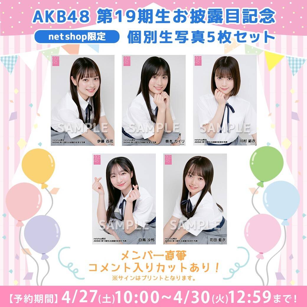 【4/27(土)10時予約開始】AKB48 第19期生お披露目記念個別生写真発売のお知らせ