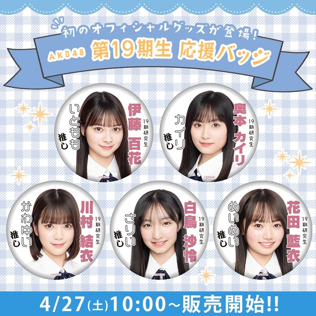 新たにAKB48のメンバーとして加入した第19期生のお披露目記念個別生写真・応援バッジの登場です。