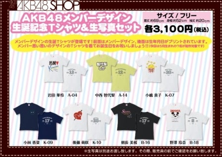 「AKB48メンバーデザイン生誕記念Tシャツ&生写真セット」販売のお知らせ