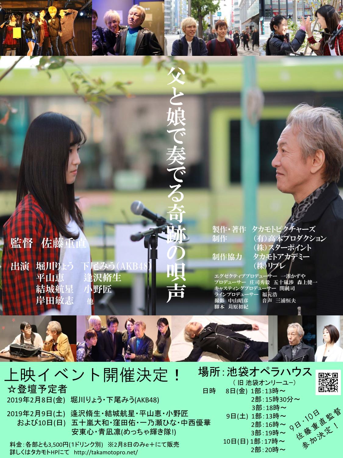 AKB48チーム8 山口県代表・下尾みうが主演している、短編映画「父と娘で奏でる奇跡の唄声」のイベント開催決定!