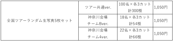 ・全国ツアーランダム生写真5枚セット 各1,050円
