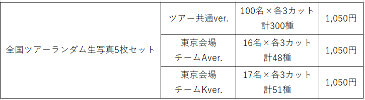 ・全国ツアーランダム生写真5枚セット 各1,050円