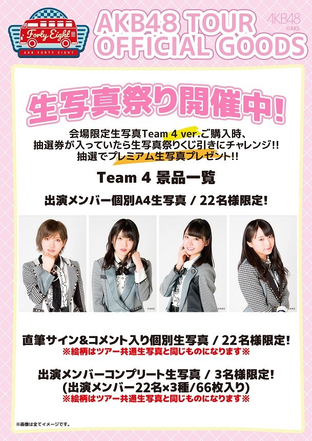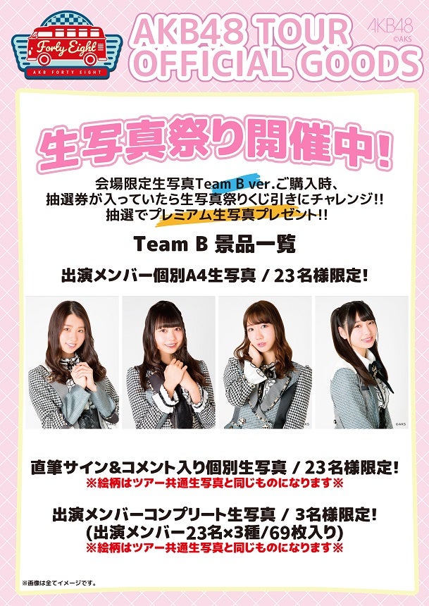 ※ランダム生写真東京会場チームBver.にはチームB景品の抽選券、ランダム生写真東京会場チーム4ver.にはチーム4景品の抽選券が封入されております。ご注意ください。