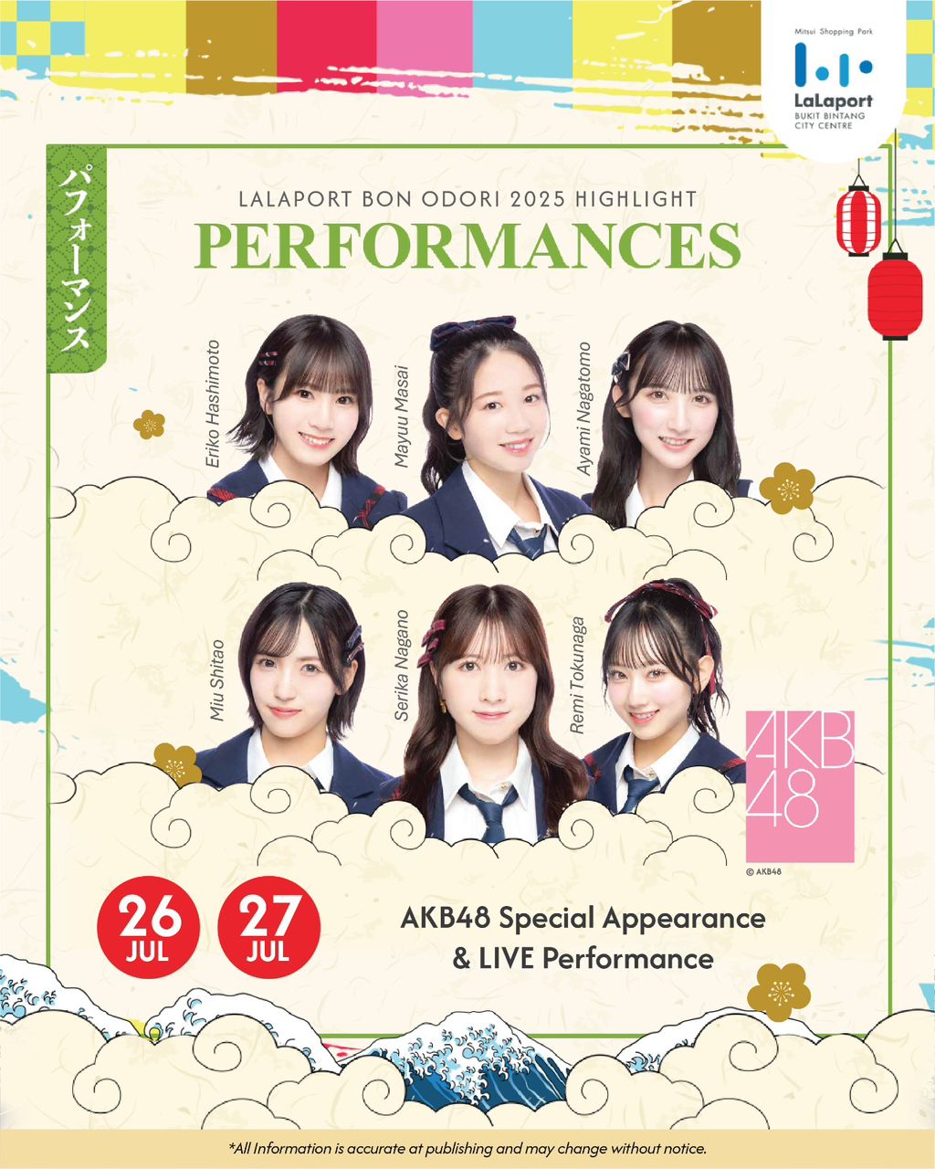 マレーシア・クアラルンプールの「三井ショッピングパーク ららぽーと ブキッ・ビンタン シティ センター」にて開催される「LaLaport’s BIGGEST Bon Odori 2025 festival」にAKB48が出演いたします!