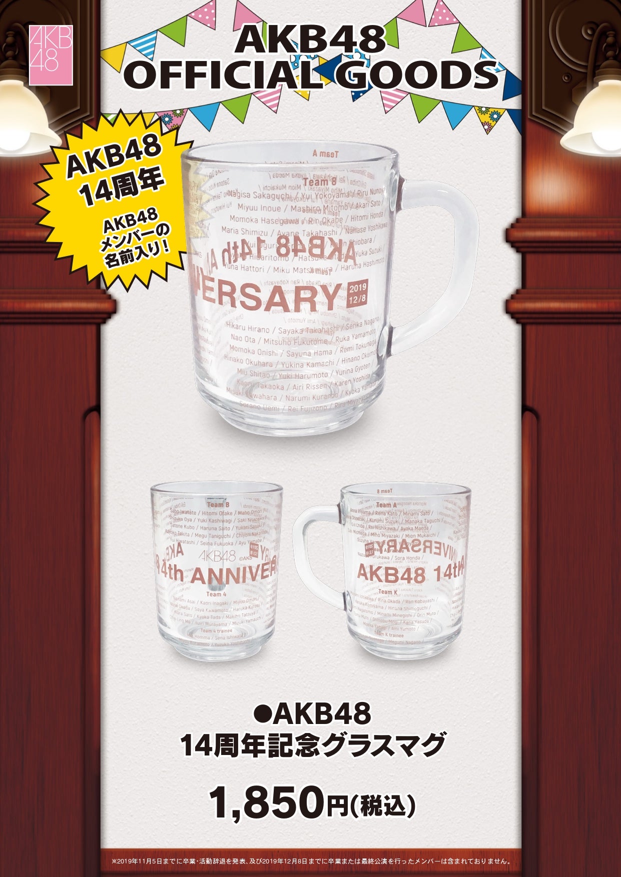 明日(12月8日)AKB48劇場ロビーにて「AKB48劇場 14周年特別記念公演」を記念してグラスマグを販売致します。