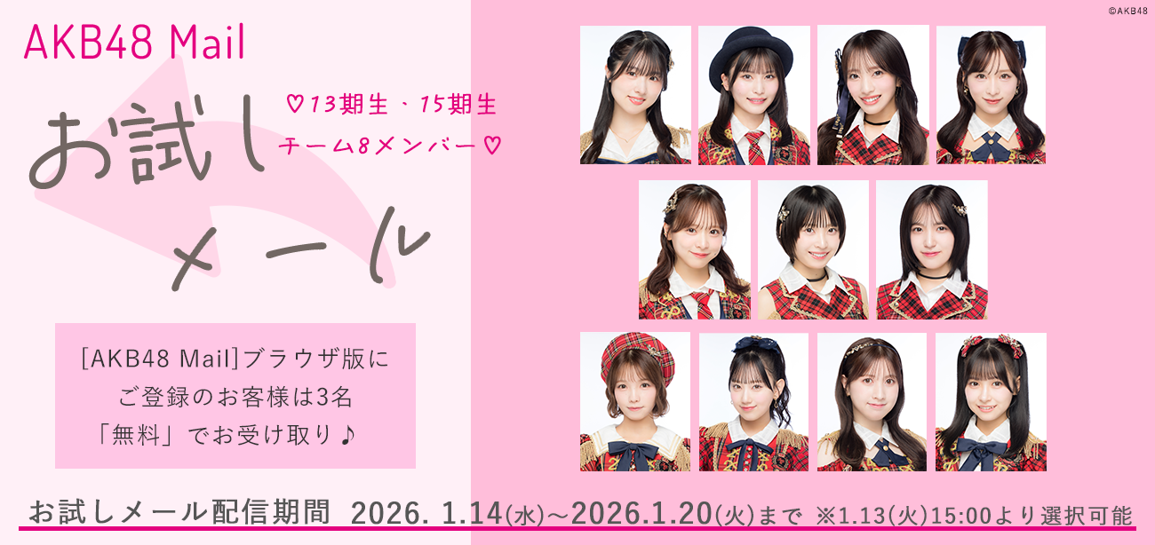 【AKB48 Mail】2026年1月度 お試しメールサービスご提供のお知らせ