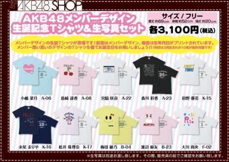 「AKB48メンバーデザイン生誕記念Tシャツ&生写真セット」3月メンバー販売のお知らせ