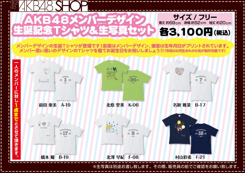 「AKB48メンバーデザイン生誕記念Tシャツ&生写真セット」 6月生誕メンバー分販売のお知らせ