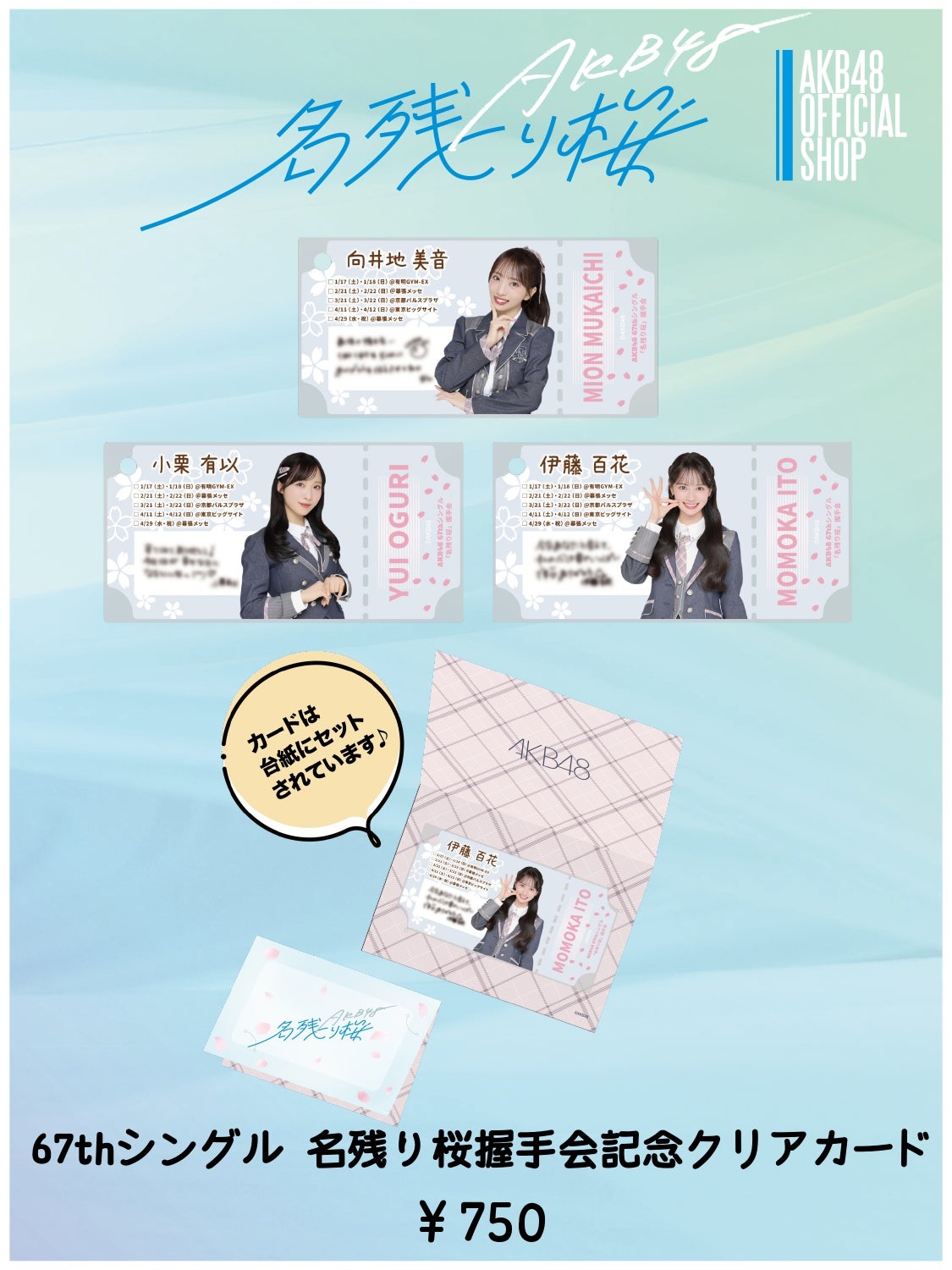 ・67thシングル 名残り桜 握手会記念クリアカード (48種)  販売価格 各 750円(税込)