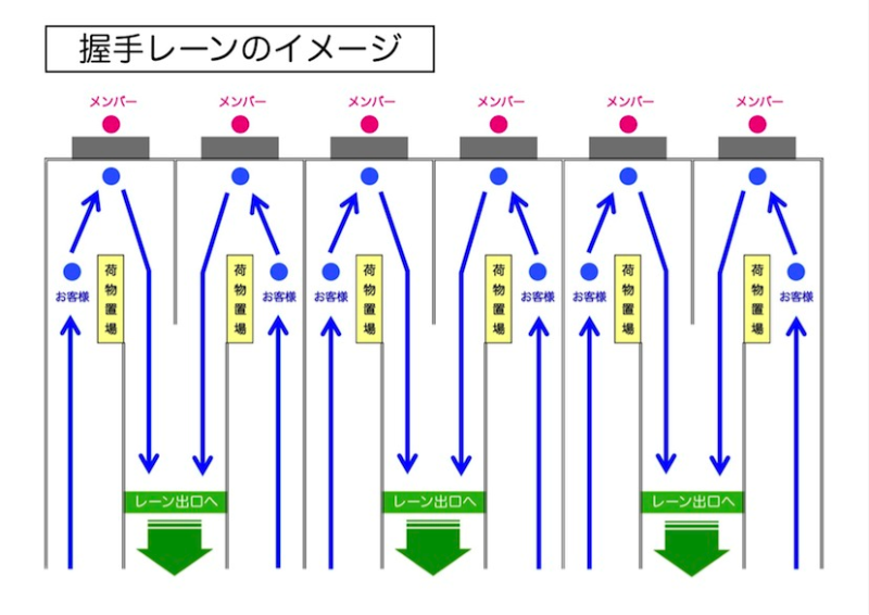 その場合は、握手レーンの後方の待機エリアへお戻りください。