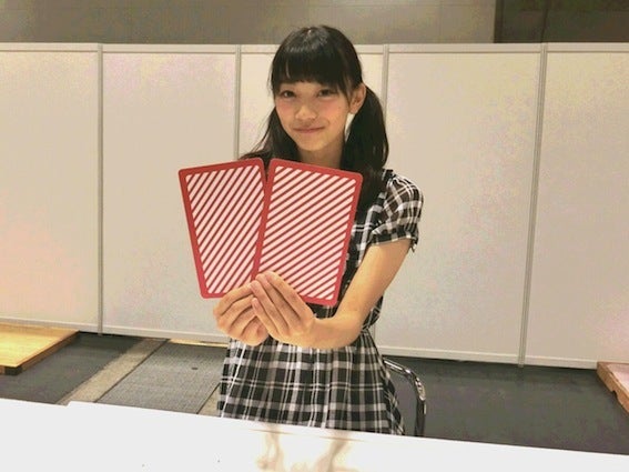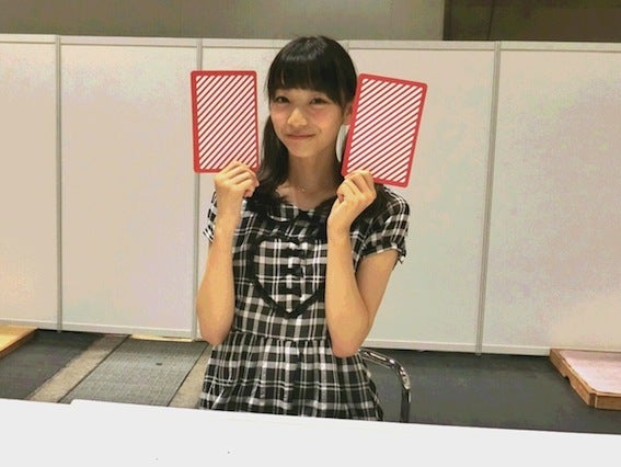握手会ブースにて、メンバーが持っている2枚の 特製オリジナルトランプ の中から1枚を