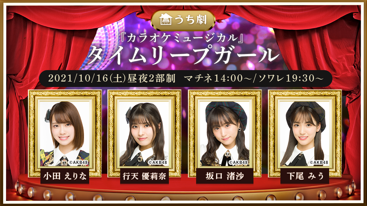 うち劇「『カラオケミュージカル』タイムリープガール」に、チーム8から小田えりな・行天優莉奈・坂口渚沙・下尾みうの出演が決定!
