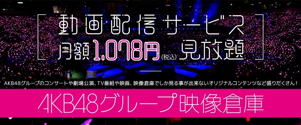 AKB48グループのコンサートや劇場公演、TV番組、日々の活動記録映像が、月額1,078円(税込)で見放題のAKB48グループ専用映像サービスです。